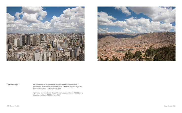 Beginning with ‘shape and surface’, comparisons are drawn between forms and textures in the man-made and natural world. ‘Organising space’ reveals the layers, divisions and structure of both vernacular and contemporary urban space. ‘Shelter’ covers all aspects of the home and survival from favela housing to skyscrapers and suburbia. ‘Memory and architecture’ reflects on the powerful aftermath of war and natural disasters and the visible passage of time through weathering. And finally ‘Architecture as Stage set’examines the use or rather the mis-use of space for personal gratification, political drama or public narrative.